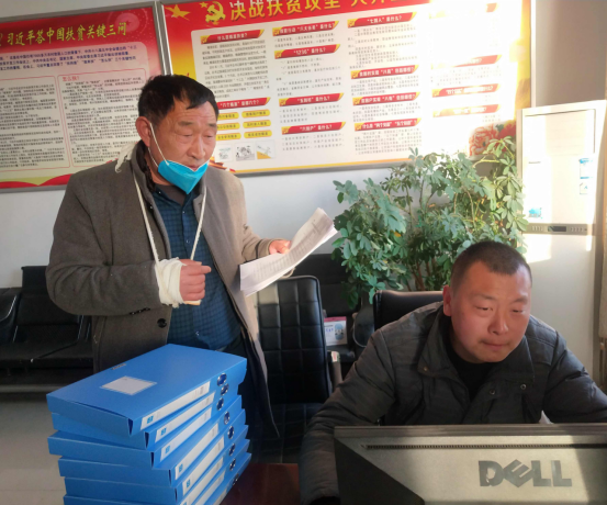 2月24日下午,在鹿邑縣產(chǎn)業(yè)集聚區(qū)姚莊行政村執(zhí)勤卡點,右手臂打著夾板、扎著吊帶的村會計魯雙全在忙著指導(dǎo)匯總?cè)甯鞯胤掂l(xiāng)人員名單。今年已經(jīng)59歲的魯雙全是一名有著20年黨齡的老黨員,自疫情防控工作開始以來,就一直堅守在一線,入戶宣傳、排查登記、消殺防疫、卡點執(zhí)勤工作崗位上,他常說,“越是危難之時,黨員越要帶頭沖鋒在前”。