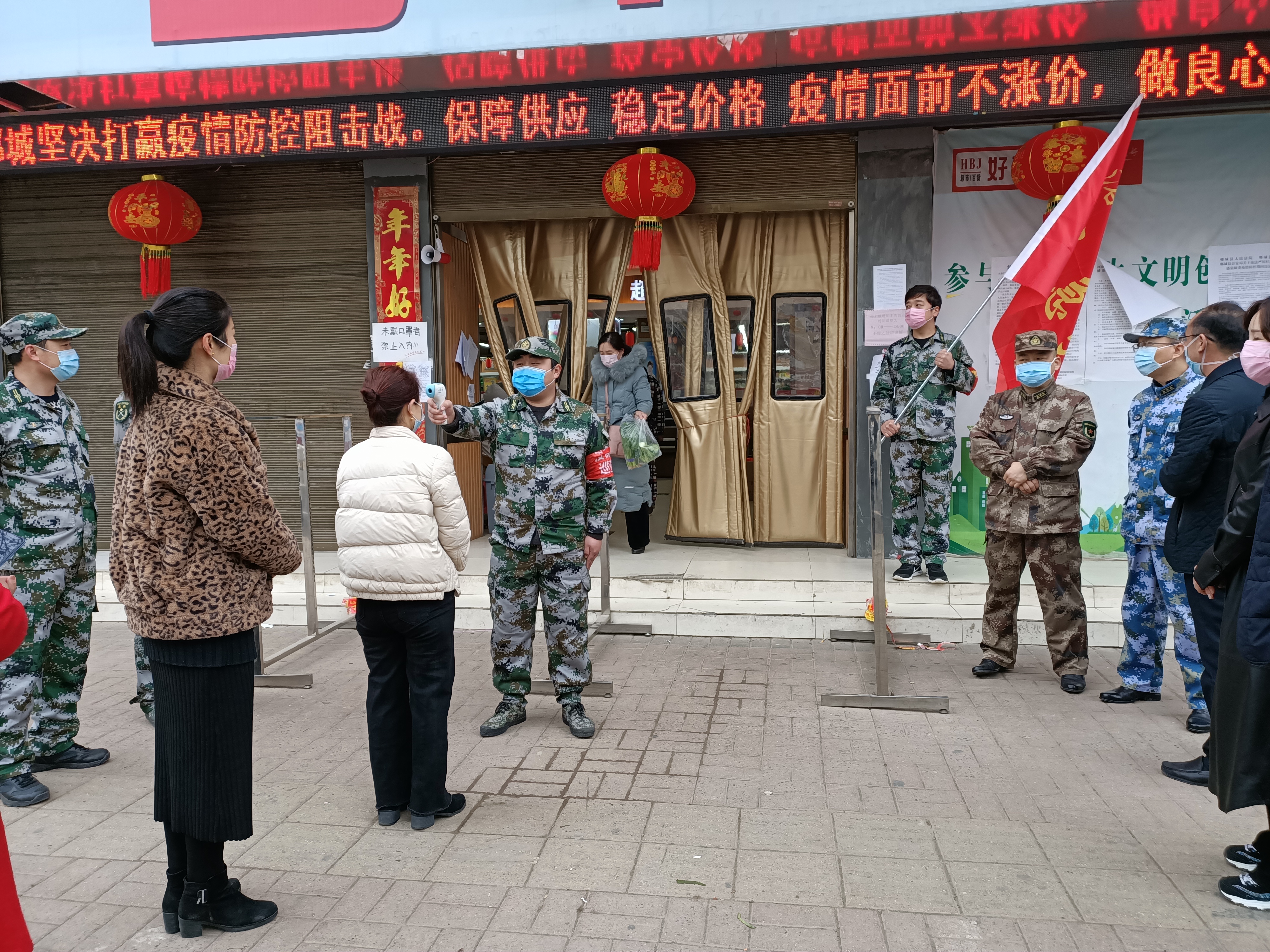 洺南街道基干民兵應(yīng)急分隊(duì)聞令而動(dòng)、聽令而行,在縣人武部和街道黨工委的號召下,迅速集合,主動(dòng)亮明身份、做表率、當(dāng)先鋒,把打贏疫情防控阻擊戰(zhàn)作為踐行初心使命、體現(xiàn)責(zé)任擔(dān)當(dāng)?shù)脑嚱鹗?,?zhàn)斗在疫情防控第一線。洺南街道位于縣城老城區(qū),也是縣城的商業(yè)區(qū),轄區(qū)道路較多,人員居住密集,流動(dòng)人口較多,疫情防控難度大、任務(wù)重。近期,隨著復(fù)工復(fù)產(chǎn)開始,人員管控難度進(jìn)一步加大,洺南街道基干民兵應(yīng)急分隊(duì)按照街道黨工委、武裝部的安排部署,34名基干民兵應(yīng)急分隊(duì)隊(duì)員全部分配到基層防控一線,與社區(qū)干部、志愿者、抽調(diào)人員一起聯(lián)合執(zhí)勤,重點(diǎn)協(xié)助轄區(qū)超市開展疫情防控,做好人員登記、體溫測量,秩序維護(hù),保障居民生活物資采購的有序進(jìn)行。