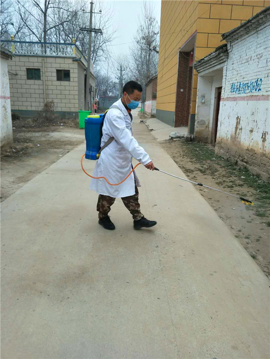 他不是為村民分發(fā)消毒液,就是對(duì)村主干道、公共衛(wèi)生間每天堅(jiān)持消毒,雙腿累腫了,嘴唇起了泡,可他咬牙堅(jiān)持。村委成員見他每天像個(gè)陀螺一樣高速的運(yùn)轉(zhuǎn)著,讓他休息幾天,可楊建崗說(shuō)啥也不同意。每天還是堅(jiān)持著值班,發(fā)現(xiàn)問題及時(shí)糾正,對(duì)有些不理解的村民進(jìn)行說(shuō)服教育。除了值班,他還與其他志愿者一起做好流動(dòng)崗,發(fā)現(xiàn)有扎堆的村民立即勸阻,發(fā)現(xiàn)有不戴口罩者一律勸回,對(duì)亂走親戚的村民堅(jiān)決說(shuō)“不”。