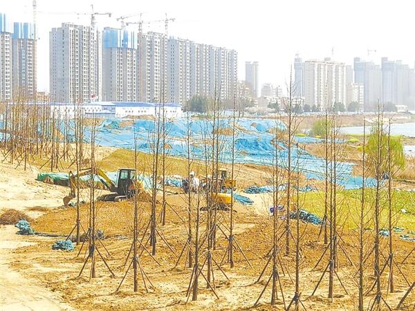 3月20日,沙潁河周口大道至八一大道北岸生態(tài)改造工程正在緊張施工。該工程全長(zhǎng)約4.6公里,整體設(shè)計(jì)圍繞沙潁河主題印象展開(kāi),濱水景觀將展示豐富多彩的周口文化底蘊(yùn)。目前,周口大道至大慶路段的景觀綠化和市政道路正在加快施工。記者 孫安平 攝