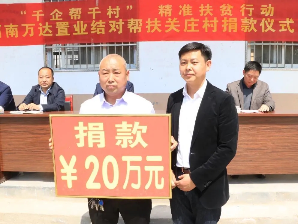 4月13日上午,河南萬達(dá)置業(yè)有限公司結(jié)對(duì)幫扶捐款儀式在市城鄉(xiāng)一體化示范區(qū)許灣鄉(xiāng)關(guān)莊行政村隆重舉行?,F(xiàn)場,該公司為關(guān)莊行政村捐款20萬元助力脫貧攻堅(jiān)。
