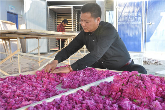 2015年,在昆明、鄭州等地從事花卉經(jīng)營銷售十多年,積累了一定經(jīng)驗和資本的劉軍停返鄉(xiāng)流轉(zhuǎn)土地種植藥用玫瑰400多畝,目前已到采摘期。這些玫瑰經(jīng)分揀、烘干等初加工后銷售到南方某醫(yī)藥公司進(jìn)行深加工,花農(nóng)每畝可收入7000元左右。