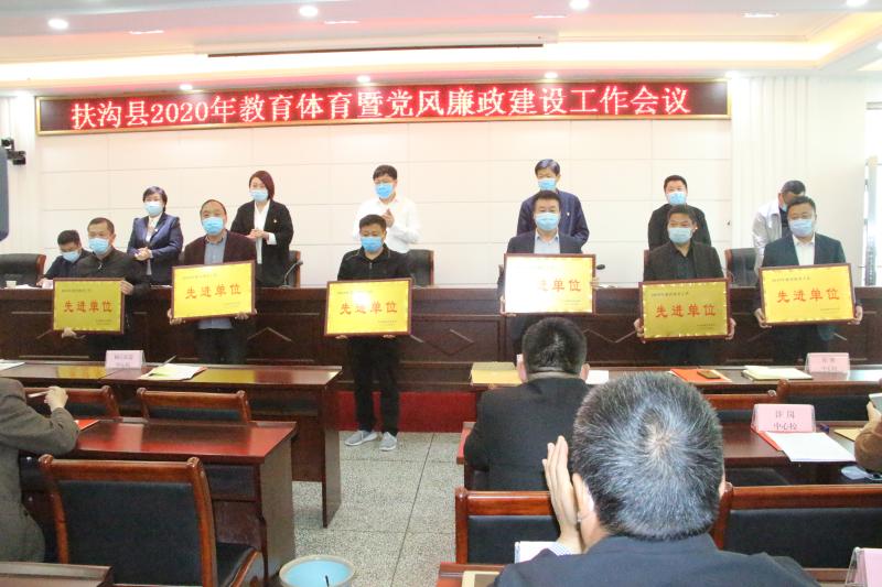 副局長嚴(yán)然宣讀了2019年教育體育工作先進(jìn)單位的表彰決定;副局長吳春輝傳達(dá)了扶溝縣教體局新冠肺炎疫情防控工作領(lǐng)導(dǎo)組關(guān)于加強(qiáng)疫情防控期間工作紀(jì)律的通知;各中心校長、局直學(xué)校校長依次遞交了目標(biāo)責(zé)任書和黨風(fēng)廉政建設(shè)承諾書。