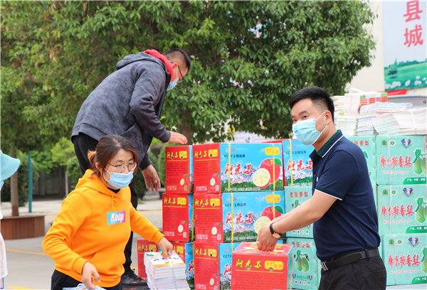 不久,一輛小貨車駛?cè)雽嶒炐W(xué)院內(nèi),滿載著水果、毛巾、酒精、消毒液、洗手液和圖書等物資,總計價值兩萬余元。吳玲玲跳下車,向迎上來的韓濤簡單地打了招呼,便和學(xué)校工作人員一起把水果等物資卸載搬運。