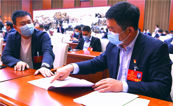 5月12日,參加市四屆人大五次會議的人大代表就大會上所作的政府工作報告等內(nèi)容進(jìn)行討論交流。