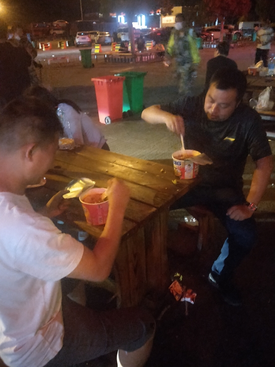 當(dāng)晚,隊(duì)員們帶著嫌疑人歸來,在服務(wù)區(qū)內(nèi),群里傳來一張大家吃方便面的照片,靳偉成還發(fā)來一句:“帶了這么多衣服,忙得都沒有時(shí)間換一件?!?/p>