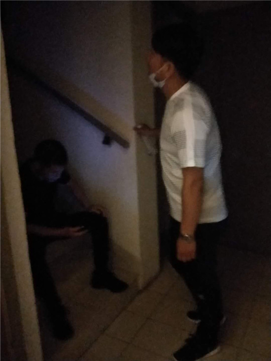 按照事先摸排到的信息,抓捕組民警終于在南京市江寧區(qū)一小區(qū)內(nèi)找到了嫌疑人的居住地,而嫌疑人卻不在屋內(nèi)。于是,民警們便在嫌疑人家門“守株待兔”,群里發(fā)來幾張民警坐在樓梯口蹲守照片。等待是漫長(zhǎng)的,一直等到晚上10時(shí)許,嫌疑人始終沒有出現(xiàn)。民警通過嫌疑人門把手上幾天前的一張廣告單頁判斷,嫌疑人很有可能已經(jīng)不在此居住,便撤離了蹲守點(diǎn)。