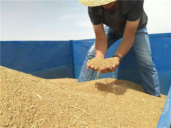 今年3月以來,本報持續(xù)關(guān)注這種中藥肥料使用效果,并到多塊麥田現(xiàn)場采訪。麥收季,記者再次來到商水縣,了解經(jīng)中藥肥料噴施小麥的收成情況。