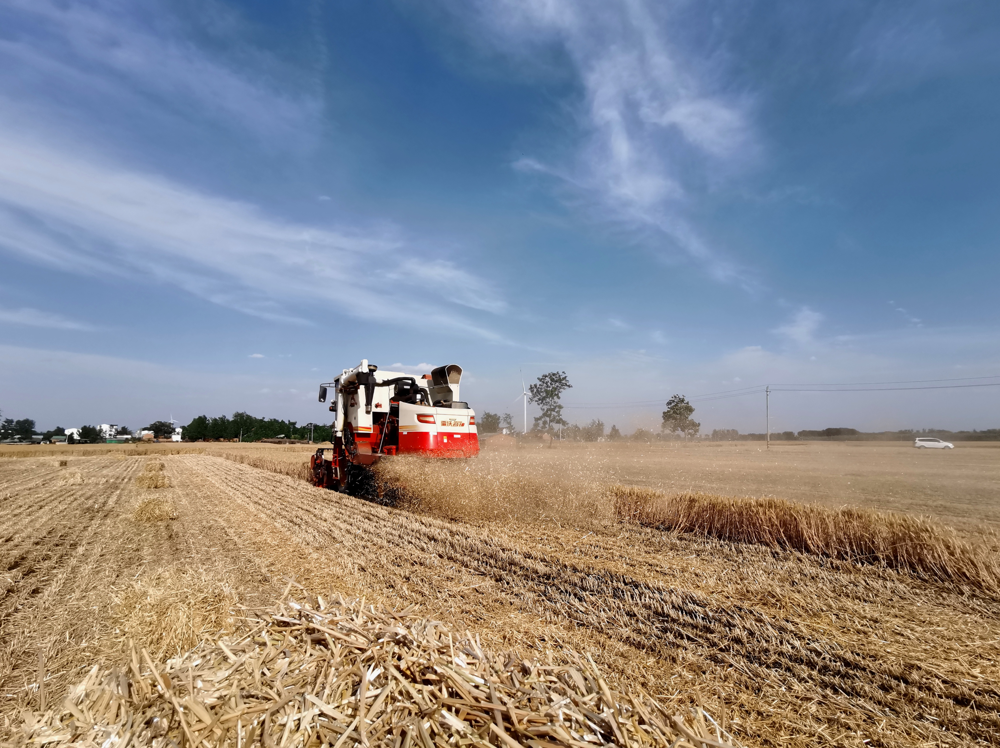 驕陽(yáng)似火,麥香四溢。6月的西華鄉(xiāng)村大地到處一片繁忙景象。一臺(tái)臺(tái)收割機(jī)在金黃色的麥浪中轟鳴著馳騁,隨著小麥?zhǔn)崭顧C(jī)駛過,一顆顆金燦燦的麥穗被“吃”進(jìn)收割機(jī),然后,一粒粒飽滿的麥子從出倉(cāng)口“吐”進(jìn)農(nóng)用車車斗里,農(nóng)民的臉上洋溢著豐收的喜悅。
