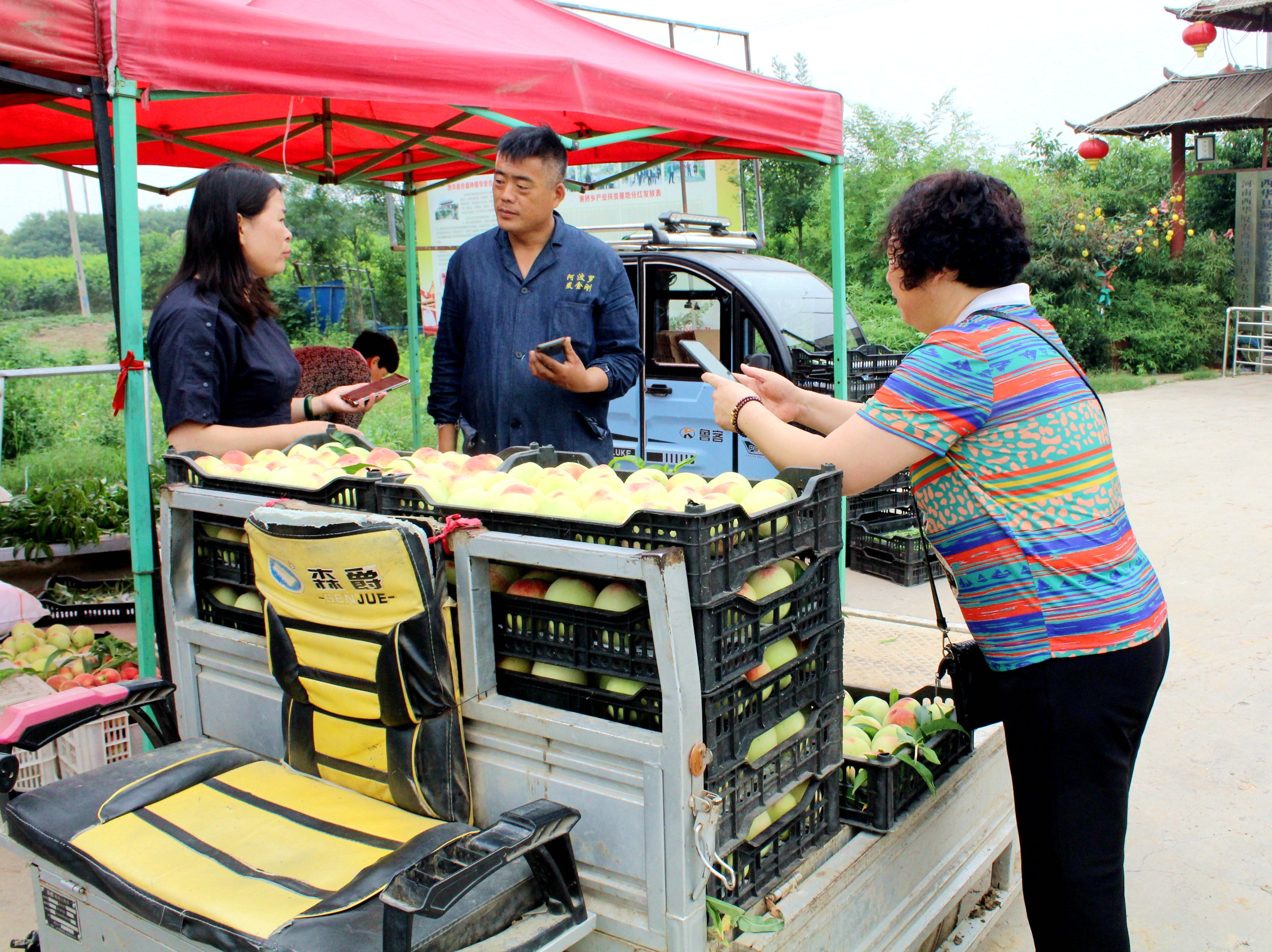 當(dāng)日,她與姐妹們一起帶著自家的孩子,驅(qū)車20多公里,來到西華縣潁河灣生態(tài)采摘園,采摘、品嘗黃橋水蜜桃,歡笑之聲,不絕于耳。這是黃橋萬畝桃園五月鮮桃上市后,周邊縣市市民采摘、品嘗、購買水蜜桃的一個縮影。