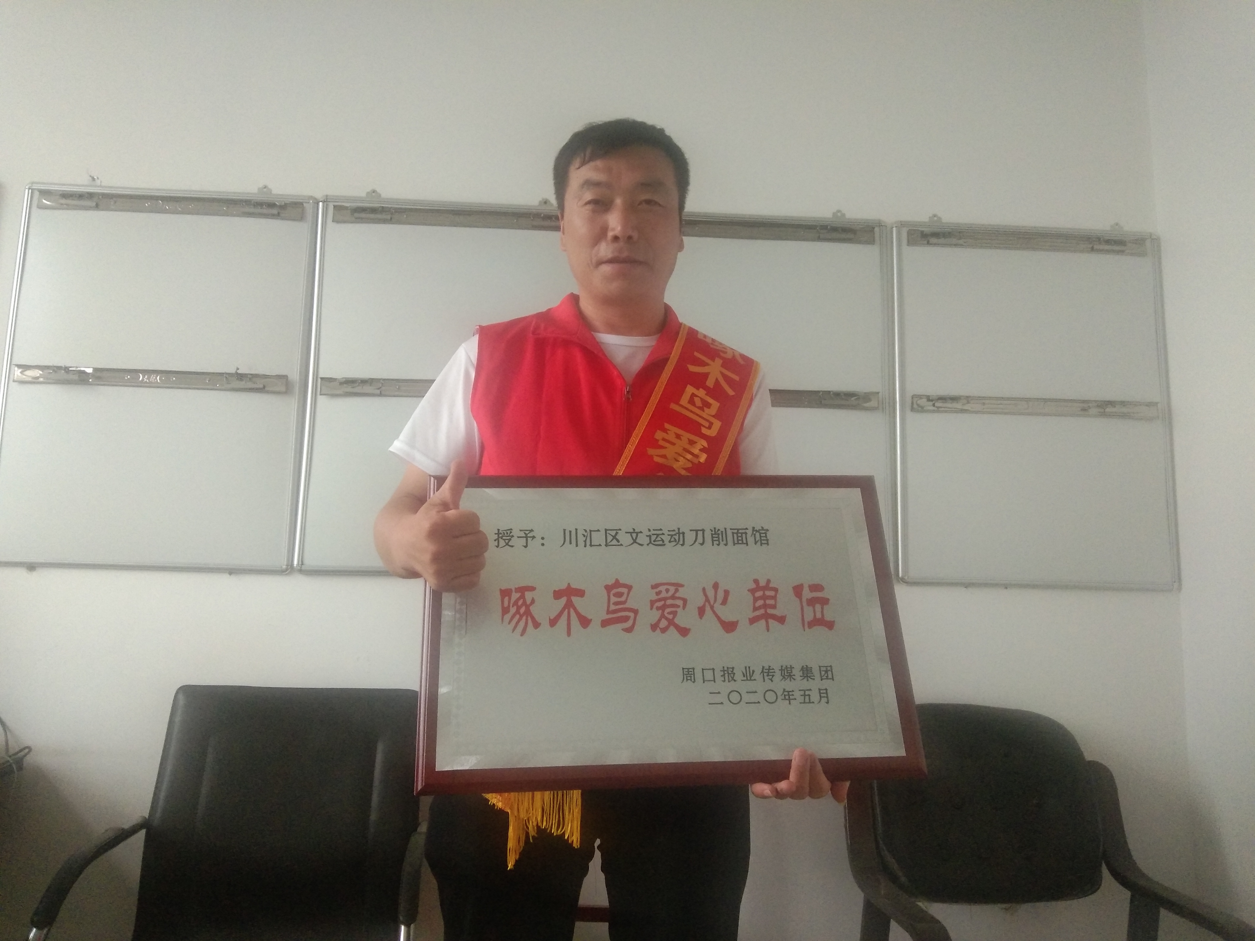 6月15日下午,周口報業(yè)傳媒集團14樓會議室內(nèi),熱鬧非凡,10名優(yōu)秀啄木鳥志愿者和10家啄木鳥愛心單位被隆重表彰,他們一個個身披綬帶,上臺領獎,臉龐洋溢著自信而美麗的笑容。而文運動經(jīng)營的“川匯區(qū)文運動刀削面館”被評為啄木鳥愛心單位,這無疑是對他多年來堅持參加公益事業(yè)的褒獎。