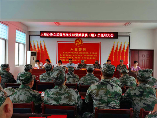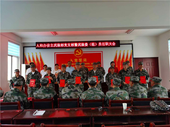 本次大會(huì)確定在人和辦武裝部建立1個(gè)黨支部,人和辦武裝部長(zhǎng)王超任黨支部書記,在轄區(qū)9個(gè)社區(qū),每個(gè)社區(qū)建立1個(gè)3人黨小組,黨小組成員包括在該社區(qū)設(shè)置的1名兼職武裝委員和在該社區(qū)基本單元網(wǎng)格設(shè)置的2名兼職武裝組員。每個(gè)黨小組編入人和街道武裝部黨支部,并報(bào)區(qū)人武部備案,制定任命證書。
