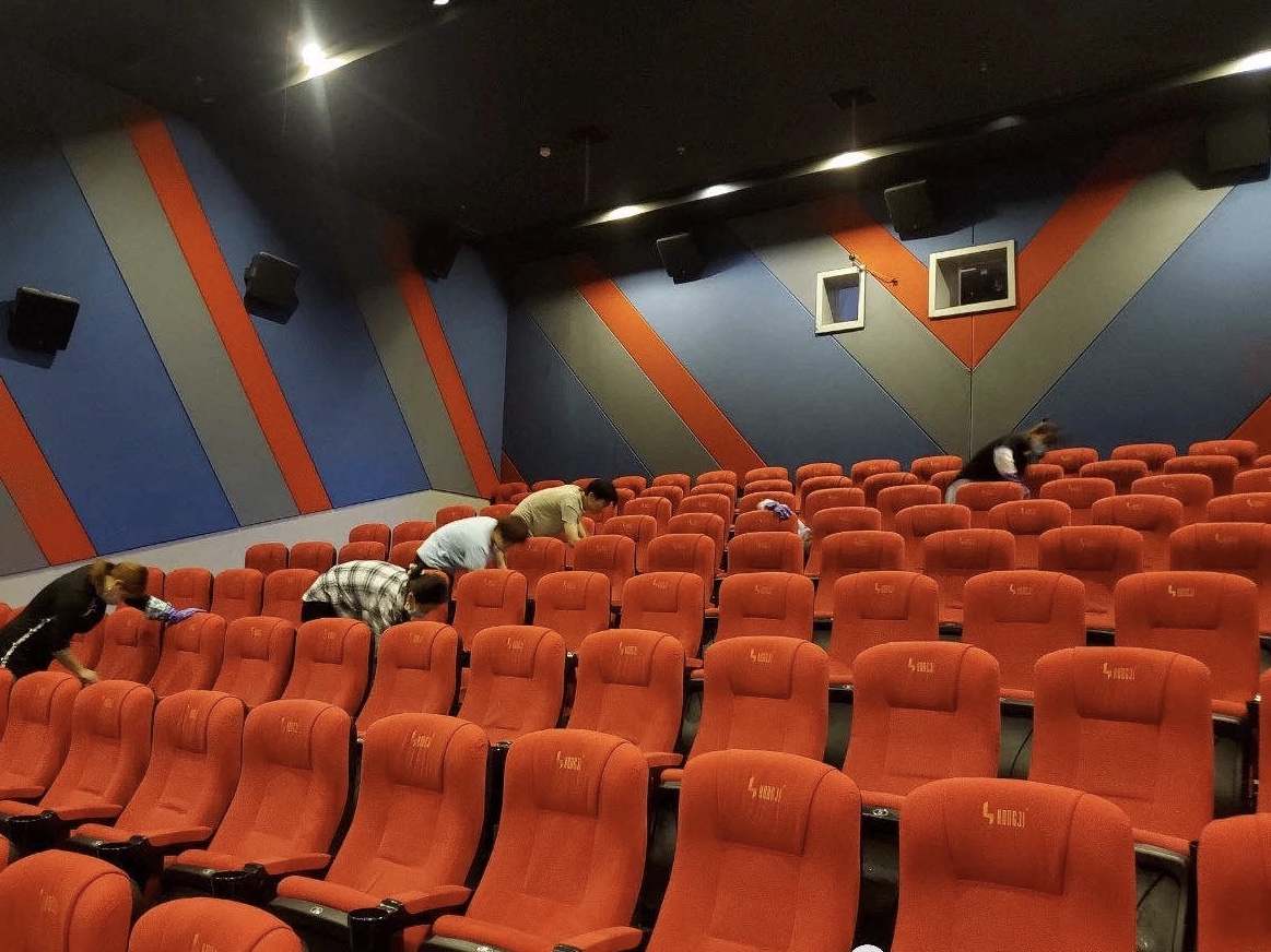 “停業(yè)六個月,終于等來了即將開門的喜訊?!苯ㄐ侣芬患矣俺枪ぷ魅藛T說。由于防疫需要,自1月24日以來,一直處于停業(yè)狀態(tài)。7月20日上午,記者來到影院看到工作人員正在對觀影設(shè)備進(jìn)行檢測、調(diào)試,并對影廳、公共區(qū)域等處進(jìn)行深度防潮防霉、消毒工作,以安全整潔的環(huán)境迎接影院重開。