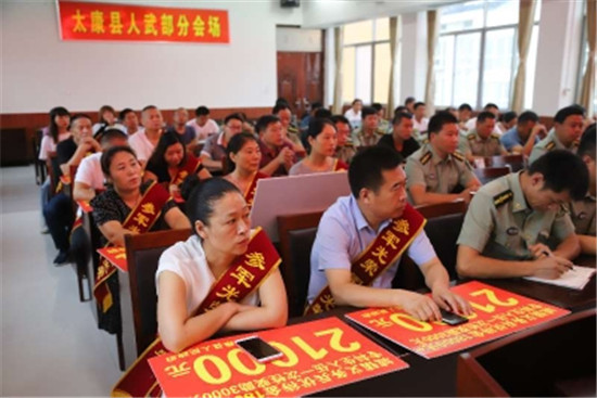 太康縣還隆重舉行了2020年義務(wù)兵家屬優(yōu)待金集中發(fā)放儀式??h委、縣政府高度重視現(xiàn)役軍人權(quán)益保障,7月30日,在縣人武部國防教育中心舉行了2020年義務(wù)兵家屬優(yōu)待金集中發(fā)放儀式,按照義務(wù)兵家屬優(yōu)待金發(fā)放標(biāo)準(zhǔn),將所有優(yōu)待金全部足額發(fā)放到位。前來參加儀式的家屬們披紅帶花,氣氛熱烈,營造了“一人參軍、全家光榮”的濃厚氛圍,進(jìn)一步激發(fā)了廣大青年學(xué)子參軍報國熱情。