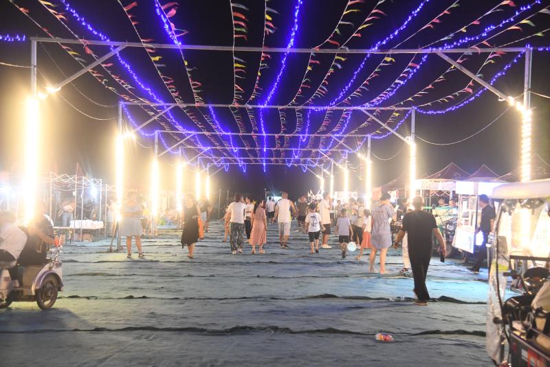 該夜市場(chǎng)地由商水縣水韻章華文商旅項(xiàng)目提供,占地近百畝,設(shè)有100多個(gè)攤位,經(jīng)營范圍包括吃喝玩樂娛、服裝百貨等,每天晚上6點(diǎn)多營業(yè),11點(diǎn)收攤,周末客流高峰時(shí)游客有3000多人,其中不少來自周口中心城區(qū)。
