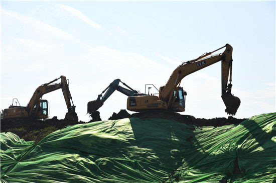 8月13日,在河南省周口市商水縣浩邦紡織年產(chǎn)12000噸高檔針織面料項(xiàng)目工地,工程機(jī)械正在開挖地基。