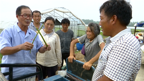 當(dāng)天,一場(chǎng)技術(shù)講座正在如期舉行,當(dāng)?shù)赜忻奶J筍種植“土專家”程殿明說:“咱這蘆筍種植,要以噴灑生物藥為主,在有機(jī)種植上,千萬不能用有機(jī)磷類的。大棚要想多掙錢,眼下管理是關(guān)鍵,長(zhǎng)勢(shì)好了,進(jìn)入冬季,一個(gè)棚采摘就能掙三到五千塊錢?!?/p>