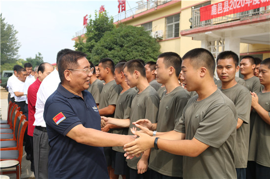 9月9日上午,在鹿邑縣預(yù)定新兵役前訓(xùn)練集結(jié)之際,資深媒體人、北京周口企業(yè)商會(huì)秘書長(zhǎng)、鹿邑縣雙擁愛心協(xié)會(huì)發(fā)起人張杰特別邀請(qǐng)享受正軍級(jí)職資待遇、終身享受國務(wù)院政府特殊津貼的鹿邑籍將軍畢啟亮,為鹿邑縣343名體檢、政考雙合格的“準(zhǔn)新兵”上了一堂精彩的國防教育課,同時(shí)還向“準(zhǔn)新兵”每人捐贈(zèng)一套由周口商水籍原總政治部秘書長(zhǎng)、軍事科學(xué)院副政治委員,第二炮兵副政治委員程寶山中將親手題寫“昨日是鄉(xiāng)親,今天成戰(zhàn)友——從軍報(bào)國志高遠(yuǎn),不忘家鄉(xiāng)故土情”的筆記本和鋼筆一支。鹿邑縣人武部部長(zhǎng)范亞光,縣退役軍人事務(wù)管理局負(fù)責(zé)同志以及鹿邑縣雙擁愛心協(xié)會(huì)團(tuán)體在現(xiàn)場(chǎng)聆聽國防教育課并參加捐贈(zèng)活動(dòng)。