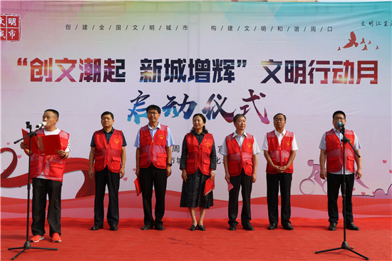 9月13日上午,市城鄉(xiāng)一體化示范區(qū)“創(chuàng)文潮起,新城增輝”文明行動(dòng)月主題活動(dòng)啟動(dòng)。市委宣傳部副部長李向宏,區(qū)領(lǐng)導(dǎo)韓華、張曉、王宇飛、王軼、胡海濤出席啟動(dòng)儀式,市委宣傳部及示范區(qū)500名志愿者參加活動(dòng)。示范區(qū)紀(jì)委書記韓華宣布儀式啟動(dòng),副處級(jí)調(diào)研員王磊主持當(dāng)天的儀式。
