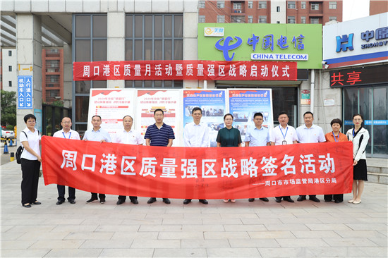 9月21日上午,周口市市場監(jiān)管局港區(qū)分局在轄區(qū)港城小區(qū)舉辦周口港區(qū)質(zhì)量月活動暨質(zhì)量強(qiáng)區(qū)戰(zhàn)略啟動儀式。周口市市場監(jiān)管局二級調(diào)研員趙學(xué)軍、港區(qū)管委會副調(diào)研員李素芹參加儀式并講話。