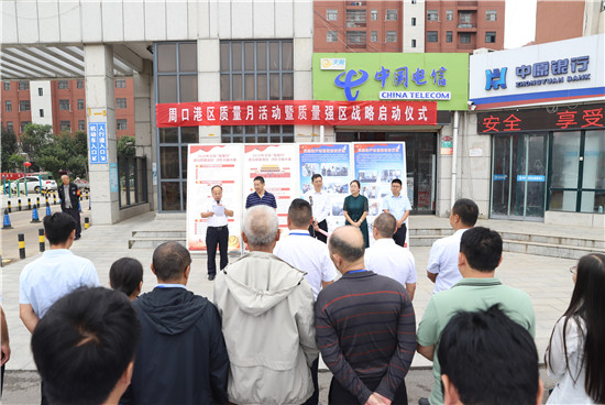 儀式上,周口市文明誠信企業(yè)、周口市港潤精密工業(yè)有限公司負(fù)責(zé)人翟振以“守初心、擔(dān)使命,推動高質(zhì)量發(fā)展”為題,向全區(qū)廣大企業(yè)、商戶發(fā)出開展質(zhì)量月活動、實施質(zhì)量強(qiáng)區(qū)倡議。