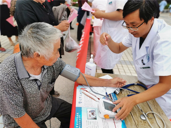 活動(dòng)現(xiàn)場(chǎng),各單位醫(yī)護(hù)人員為在場(chǎng)居民免費(fèi)測(cè)量血壓、血糖,向他們?cè)敿?xì)講解健康飲食、適度增強(qiáng)腦部運(yùn)動(dòng)、適當(dāng)加強(qiáng)體育鍛煉對(duì)預(yù)防阿爾茨海默病的重要意義,提升患者防護(hù)意識(shí)。
