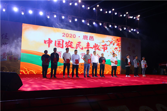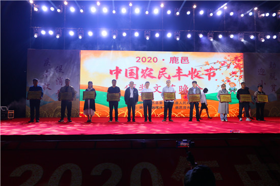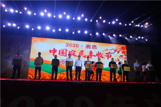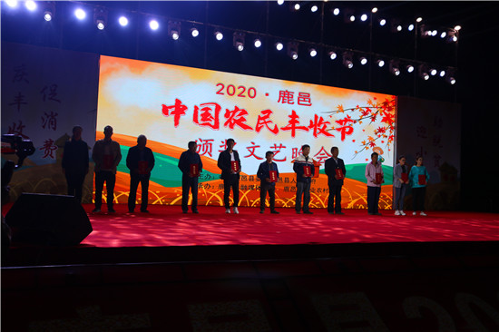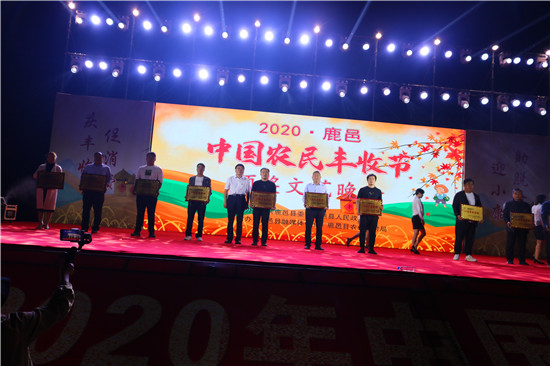 9月22日晚,由中共鹿邑縣委、鹿邑縣人民政府主辦的2020年鹿邑縣農(nóng)民豐收節(jié)文藝晚會(huì)在鹿邑縣文化中心廣場(chǎng)舉辦。晚會(huì)現(xiàn)場(chǎng)頒布了鹿邑縣“十佳家庭農(nóng)場(chǎng)”“十佳農(nóng)民合作社”“十佳特色農(nóng)產(chǎn)品品牌”“十佳返鄉(xiāng)創(chuàng)業(yè)脫貧致富帶頭人”“十佳脫貧致富先進(jìn)個(gè)人”五項(xiàng)獎(jiǎng)項(xiàng),40名新型農(nóng)民(農(nóng)場(chǎng)、合作社)代表和10個(gè)特色農(nóng)產(chǎn)品品牌獲殊榮,他們用行動(dòng)和產(chǎn)品充分展示了全縣現(xiàn)代農(nóng)業(yè)在過(guò)去一年中取得的輝煌成果??h領(lǐng)導(dǎo)雷申、楊所超、侯自峰、王曉征、張國(guó)慶、肖西國(guó)等出席豐收節(jié)晚會(huì),并為獲獎(jiǎng)?wù)哳C發(fā)榮譽(yù)證書(shū)和獎(jiǎng)牌。
