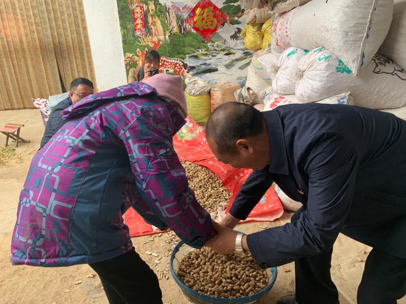 老人看身邊的幾個來看望她的人一直在那站著,心里很不是滋味,就急忙在花生堆里揀出來一些飽滿的花生,雙手捧著讓他們吃花生,誰不吃花生她都不依。一時間,這個農家院里充滿著陣陣笑聲。