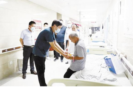“雙節(jié)”當(dāng)天,鄲城縣第二醫(yī)健集團(tuán)縣中醫(yī)院院長(zhǎng)水新華,副院長(zhǎng)史昊、仵好金、崔冬一行分別到臨床、醫(yī)技等科室慰問節(jié)日值班人員和住院患者,轉(zhuǎn)達(dá)了鄲城縣衛(wèi)健委黨組書記、主任付登霄對(duì)大家的節(jié)日祝福,并向“援鄂英雄”胡奔奔送去節(jié)日慰問,向住院患者送去月餅和祝福。記者 徐松 通訊員 張洋 攝