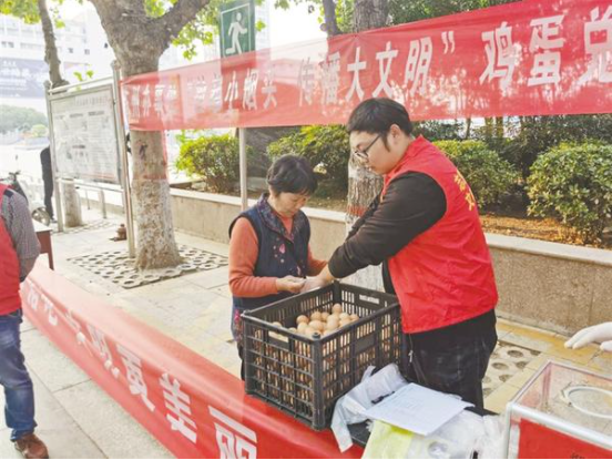 原來這是川匯區(qū)陳州辦事處在五一廣場舉辦的“撿起小煙頭 傳播大文明”煙頭換雞蛋活動。該辦事處工作人員表示:“五一廣場周邊人流量大,亂丟煙頭現(xiàn)象嚴重,治理困難,我們很苦惱,于是想出了這個煙頭換雞蛋的妙招,居民可以拿20個煙頭換一個雞蛋?;顒拥哪康木褪前l(fā)動一批人撿拾煙頭,影響帶動周邊的人,讓更多的人參與撿煙頭,讓吸煙的人不好意思丟煙頭,增強市民的環(huán)保意識和文明意識?!?/p>