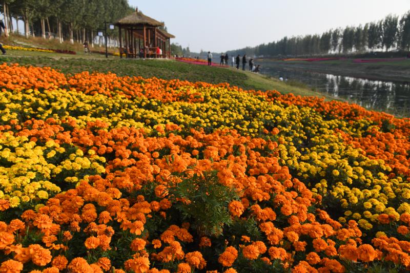 10月20日,市民在商水縣高標(biāo)準(zhǔn)農(nóng)田灌溉渠兩岸游玩。
