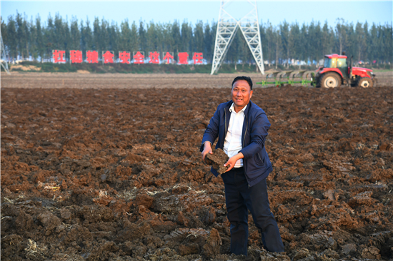 10月20日,周口市天華合作社理事長(zhǎng)劉天華在察看土地深耕效果。