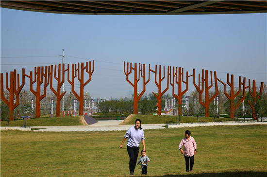 10月21日上午,市民在剛剛建成的商水森林公園(一期)游玩。