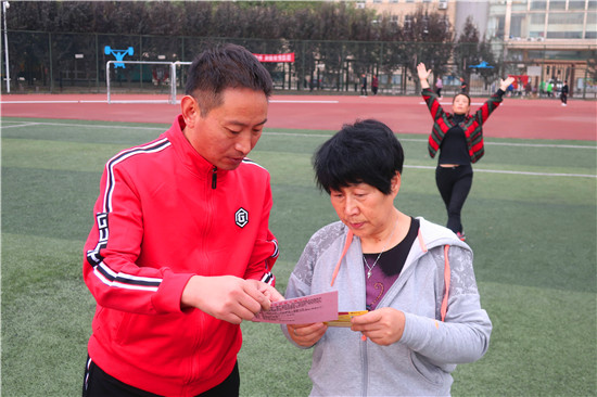 活動中,志愿者們向晨練的群眾發(fā)放健康運動提示卡、防范電信詐騙、掃黑除惡、不動產(chǎn)登記等方面的宣傳材料,免費派發(fā)“愛心粥券”;細心講解老年人常見的十大心理、常見病的預防等強身健體保健常識,引導群眾合法應對“保健品大促銷”、“集資詐騙”等典型詐騙行為;倡導老年人多了解法律知識,以提高識別詐騙、自我維權(quán)的能力。同時,志愿者們主動拾撿體育場內(nèi)的樹葉、雜物等,為晨練群眾創(chuàng)造干凈衛(wèi)生的健身環(huán)境,深受群眾喜愛和稱贊。