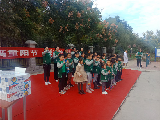 來到周口市老年護理院之后,學(xué)生們在老師的有序組織和家長們大手牽小手的幫助下,給那里的爺爺奶奶們送去了節(jié)日的祝福。祝愿爺爺奶奶身體健康,生活快樂!同時為爺爺奶奶表演了自編自導(dǎo)的節(jié)目。孩子們的有趣表演博得老人們開心開懷,并給以陣陣掌聲。
