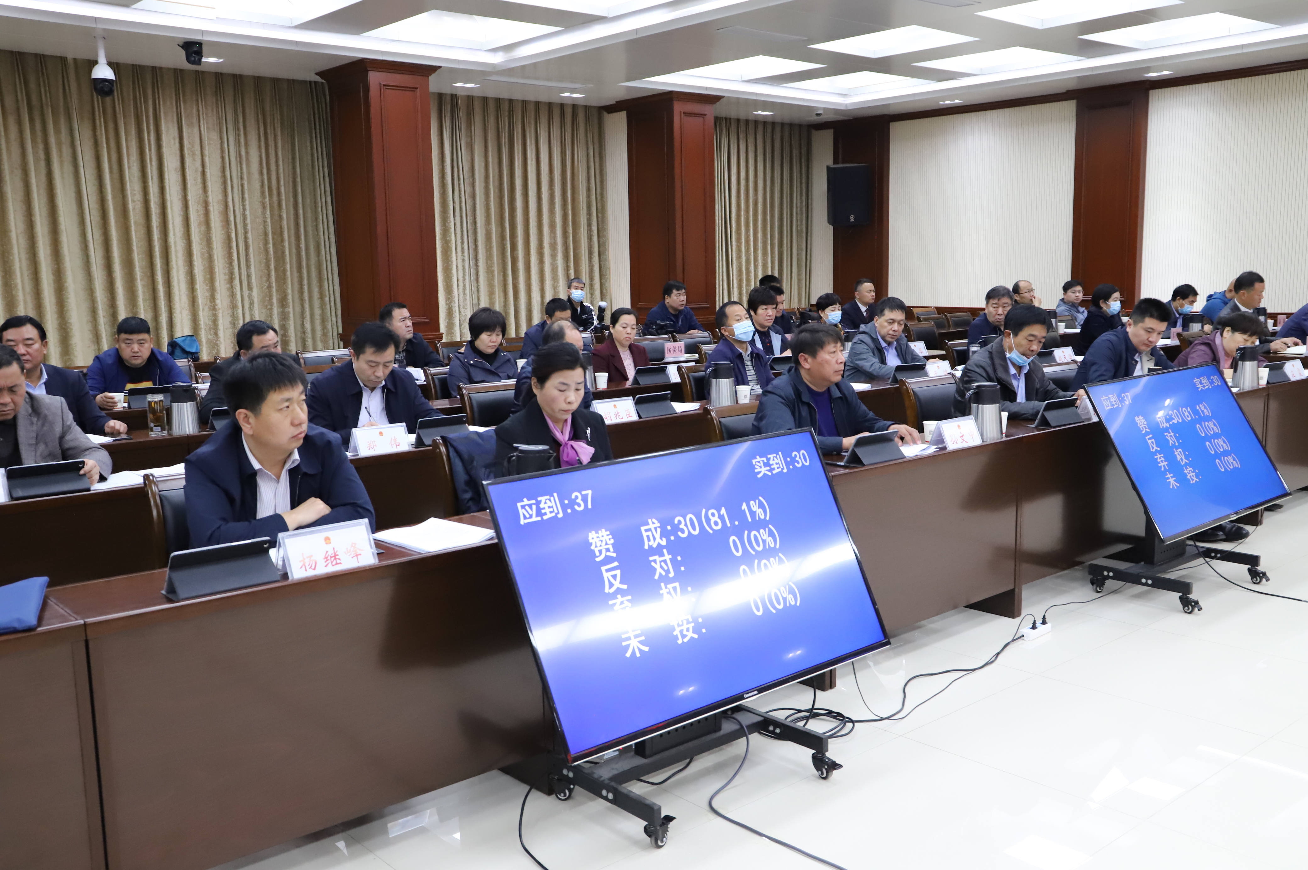 縣十四屆人大常委會應到組成人員37名,出席會議30名,缺席7名,符合法定人數(shù)。