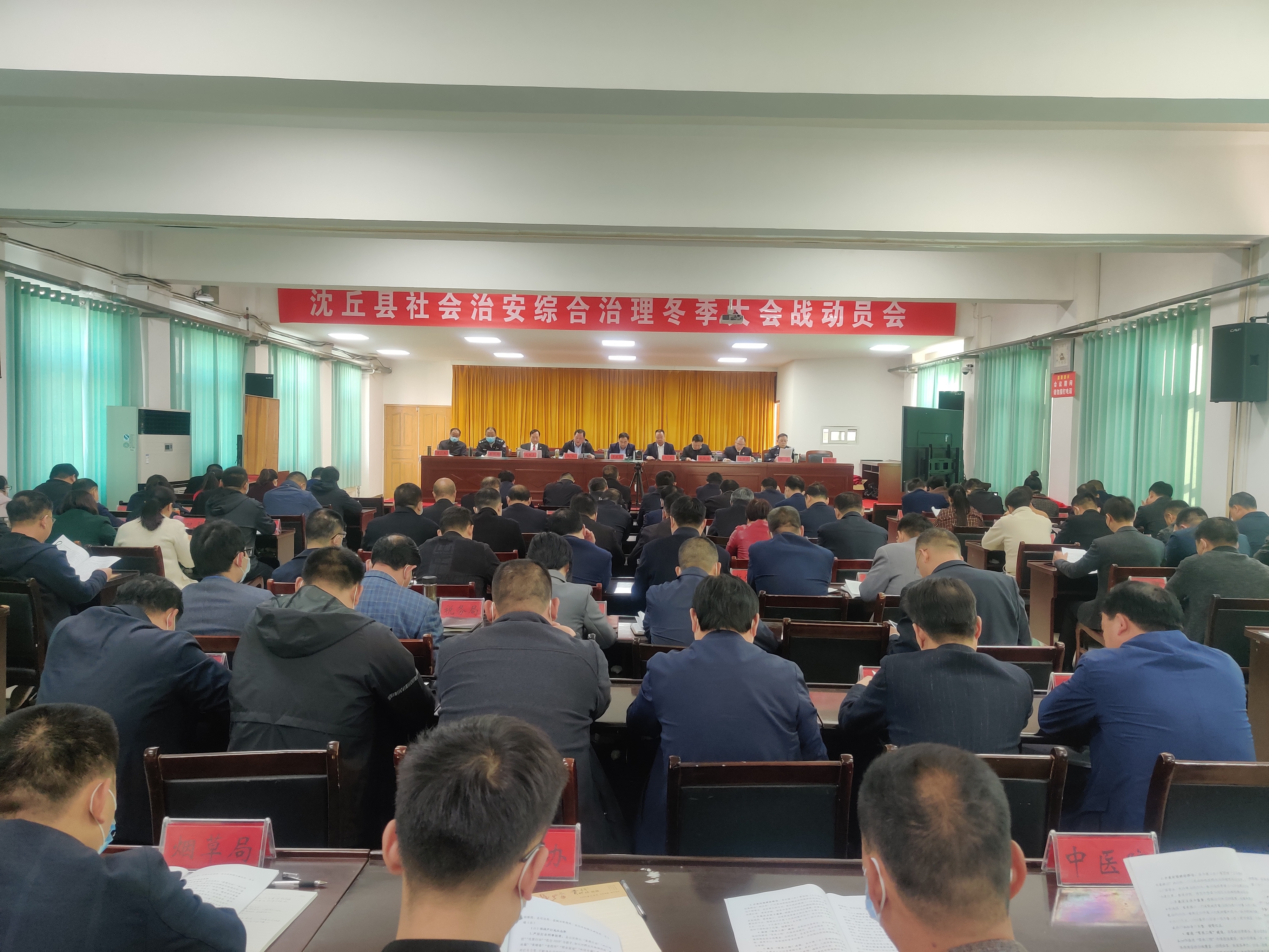 11月4日,沈丘縣組織召開社會治安綜合治理冬季大會戰(zhàn)動員會??h領(lǐng)導(dǎo)賈慶偉、段然、張銳、鹿槐生、趙振勇、李世龍、李恒新、張彥、李廣其出席會議??h直各單位及各鄉(xiāng)鎮(zhèn)(辦)主要負責(zé)人參加會議。會上,副縣長張銳宣讀了《沈丘社會治安綜合治理大會戰(zhàn)工作方案》。
