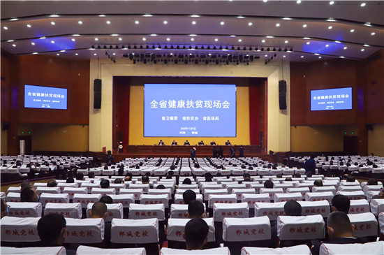11月9日,全省健康扶貧現(xiàn)場會在鄲城縣召開。主要任務是深入學習貫徹習近平總書記關于扶貧工作的重要論述和黨的十九屆五中全會精神,落實好全省脫貧攻堅健康扶貧決策部署,動員全省上下全力以赴、凝心聚力,高質量打贏健康扶貧收官戰(zhàn)。省衛(wèi)健委黨組成員、副主任王良啟,省扶貧辦黨組成員、副主任郭奎立,省醫(yī)保局黨組成員、副局長王峻峰,周口市人大常委會副主任、鄲城縣委書記羅文閣,副市長馬劍平等參加現(xiàn)場會。省紀委駐省衛(wèi)健委紀檢組長、委黨組成員李剛主持會議。