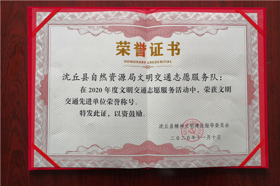 為大力弘揚“奉獻、友愛、互動、進步”的志愿服務精神,樹立典型、激勵先進,近日,沈丘縣精神文明建設指導委員會對2020年度文明交通志愿服務活動情況進行通報表彰,全縣25家部門單位文明交通志愿服務隊、101名文明交通優(yōu)秀志愿者受表彰,沈丘縣自然資源局名列其中。