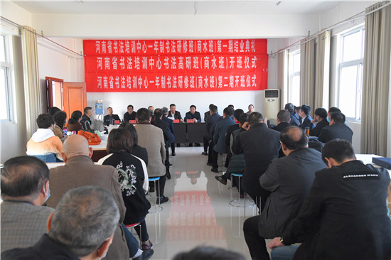 11月13日上午,伴隨著陣陣熱烈的掌聲,河南省書(shū)法培訓(xùn)中心一年制書(shū)法研修班(商水班)第一期結(jié)業(yè)典禮、河南省書(shū)法培訓(xùn)中心高研班(商水班)和河南省書(shū)法培訓(xùn)中心一年制書(shū)法研修班(第二期)開(kāi)班儀式在商水縣書(shū)法家培訓(xùn)中心隆重舉行。