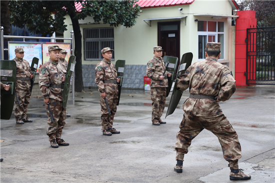 寒風(fēng)吹不滅參訓(xùn)隊(duì)員火熱的心,訓(xùn)練場上,喊號(hào)聲陣陣,盾牌閃動(dòng),警棍揮舞,擦出梆梆的響聲,這是民兵手持警棍盾牌正在操練防暴術(shù),軍容嚴(yán)整,神情專注。教練員親自示范、耐心細(xì)致講解,每個(gè)動(dòng)作盡量做到標(biāo)準(zhǔn)規(guī)范,做到攻必克、守必固。