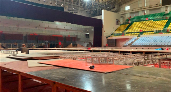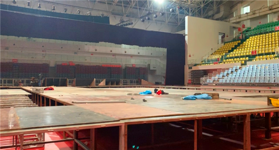 11月23日上午,記者在周口市體育中心看到,由國際名模馬艷麗領(lǐng)銜的周商大會(huì)國際時(shí)裝表演秀的舞臺(tái)正在搭建中。施工工人介紹,時(shí)裝表演秀舞臺(tái)預(yù)計(jì)24日搭建完成,搭建完成后將對舞臺(tái)進(jìn)行裝飾。
