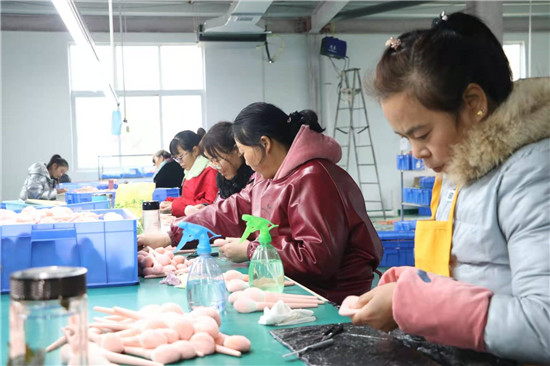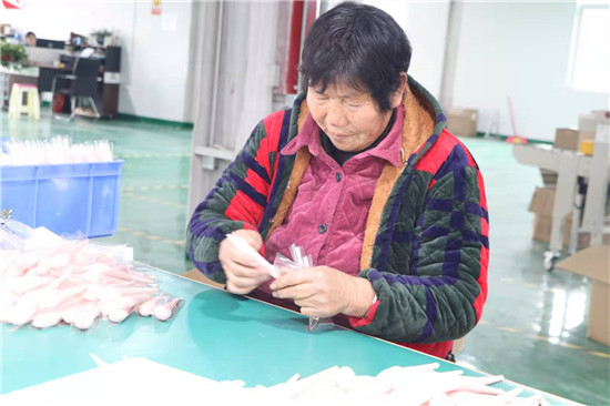 河南雅彩美妝用具有限公司負(fù)責(zé)人趙廣才介紹,公司主要從事化妝刷、美妝用具加工,十分適宜留守婦女干。車間里的工人基本都是貧困戶和住在附近的留守婦女。在家門口上班,既能掙錢,又方便照顧家人。每天中午公司還提供午餐,工人早上來上班,下午下班不耽誤回家照看孩子?!拔疑习嘁呀?jīng)10多天了,再過不久,就可以領(lǐng)工資了,真是高興!”68歲的村民張美榮告訴記者,家里孩子們都大了,自己在家閑著也沒啥事,她就到包裝車間上班,一個月算下來能掙2000多元,活也不重,既鍛煉了身體,又提高了家庭收入。