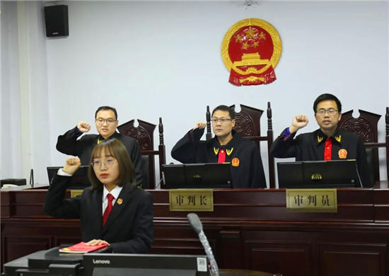 年末歲尾,在各審判庭一線工作忙碌的各辦案團(tuán)隊,同樣右手舉拳,莊嚴(yán)誦讀誓詞。