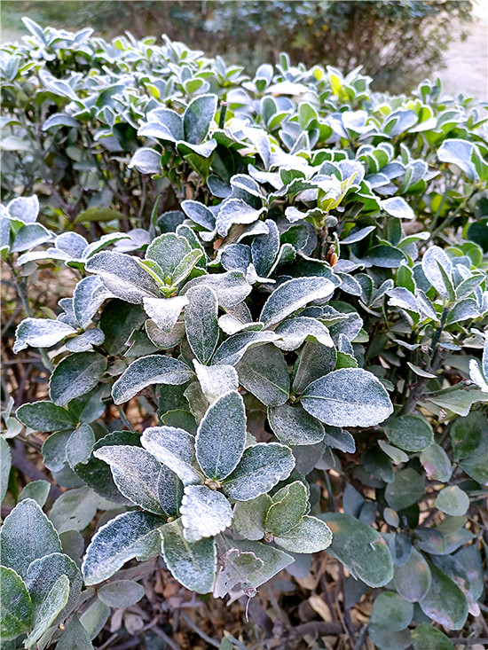 百草今何妝?茫茫著華霜。寒煙鎖素艷,疾步量路長。12月4日早晨,我市下霜了,潔白的華霜就像一層薄紗,在陽光的映照下分外美麗。
