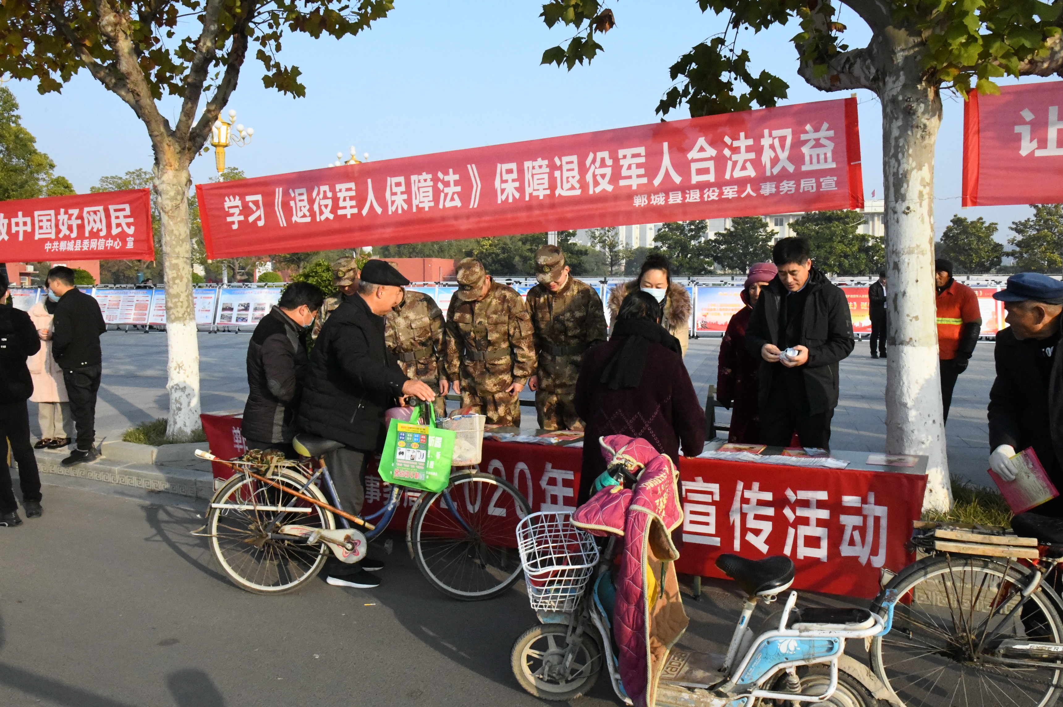 12月4日,鄲城縣退役軍人事務(wù)局黨組書記、局長褚章民帶著縣退役軍人服務(wù)中心工作人員走上街頭,在人流密集的場所進一步宣傳《中華人民共和國退役軍人保障法》,維護退役軍人合法權(quán)益。