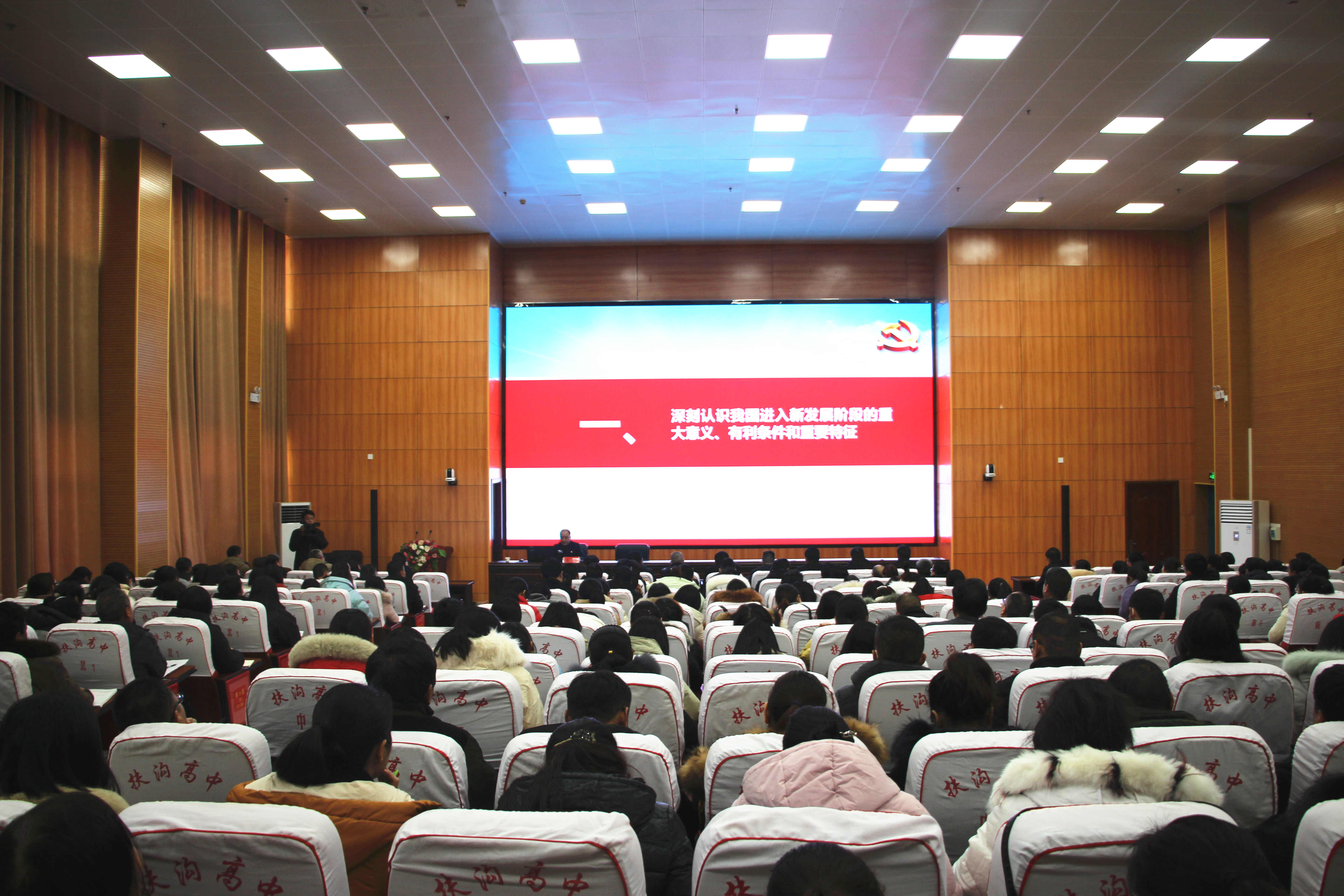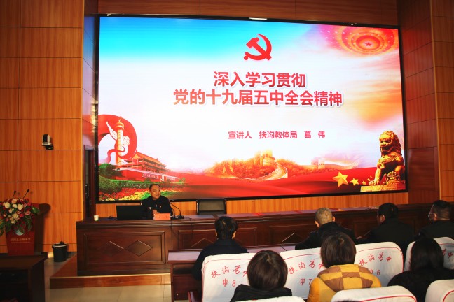 12月12日下午,扶溝縣高中德馨樓七樓會議室掌聲陣陣、座無虛席,扶溝縣學(xué)習(xí)貫徹黨的十九屆五中全會精神縣委宣講團(tuán)縣高中報告會正在這里舉行,宣講會特邀縣教體局黨組書記葛偉進(jìn)行宣講,局機(jī)關(guān)班子成員,縣高中班子成員和400余名教師參加了宣講會。
