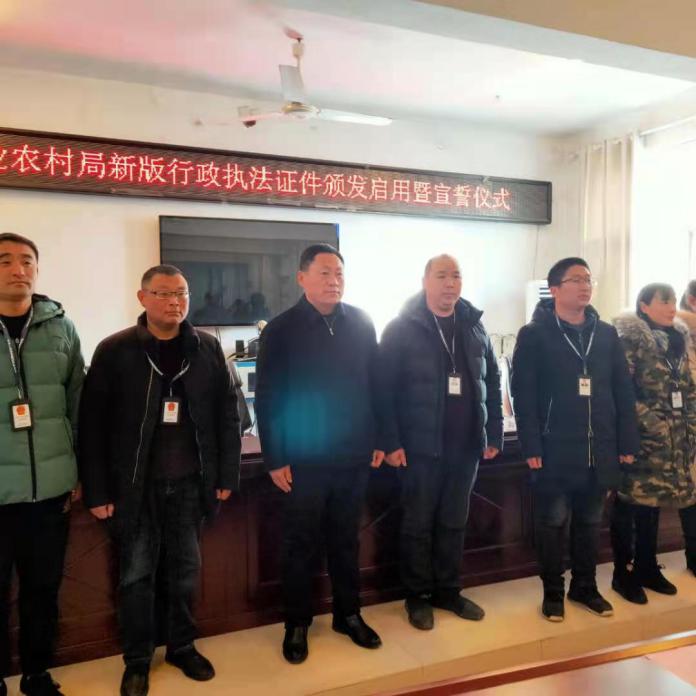 “我鄭重向祖國、向人民宣誓:忠于國家,忠于人民,忠于憲法和法律;堅(jiān)持執(zhí)法為民,堅(jiān)持依法行政,維護(hù)公平正義;以維護(hù)人民群眾利益、維護(hù)法律權(quán)威為已任,有法必依,違法必究,認(rèn)真履行法定職責(zé)?!?2月31日上午9時(shí),鹿邑縣農(nóng)業(yè)農(nóng)村局在三樓會議室召開新版農(nóng)業(yè)綜合行政執(zhí)法證件頒發(fā)啟用暨宣誓儀式大會。該局局長陳東振為51名執(zhí)法人員辦法了新版行政執(zhí)法證并提出具體要求。副局長丁文杰主持宣誓儀式大會并領(lǐng)誓。