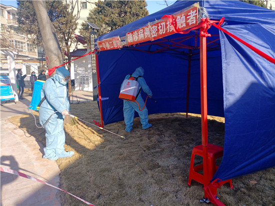 演練開始后,公安部門按照新冠肺炎疫情公共衛(wèi)生應急處置預案要求,立即下達指令,派出所民警到達現(xiàn)場維護秩序,區(qū)域控制,拉警戒線,嚴格管控人員,禁止一切車輛和人員通行。街道辦事處迅速組織社區(qū)干部及社區(qū)網格員開展核酸檢測和宣傳動員工作,根據應急預案分工開展群眾宣傳動員工作,并對患者居住單元電梯樓道等公共區(qū)域進行消毒。工作人員到確診患者家對2名密切接觸者進行流調和健康教育,將密切接觸者用120負壓救護車單人單車轉運至集中醫(yī)學隔離觀察點,對確診病例家庭環(huán)境進行采樣和消殺。