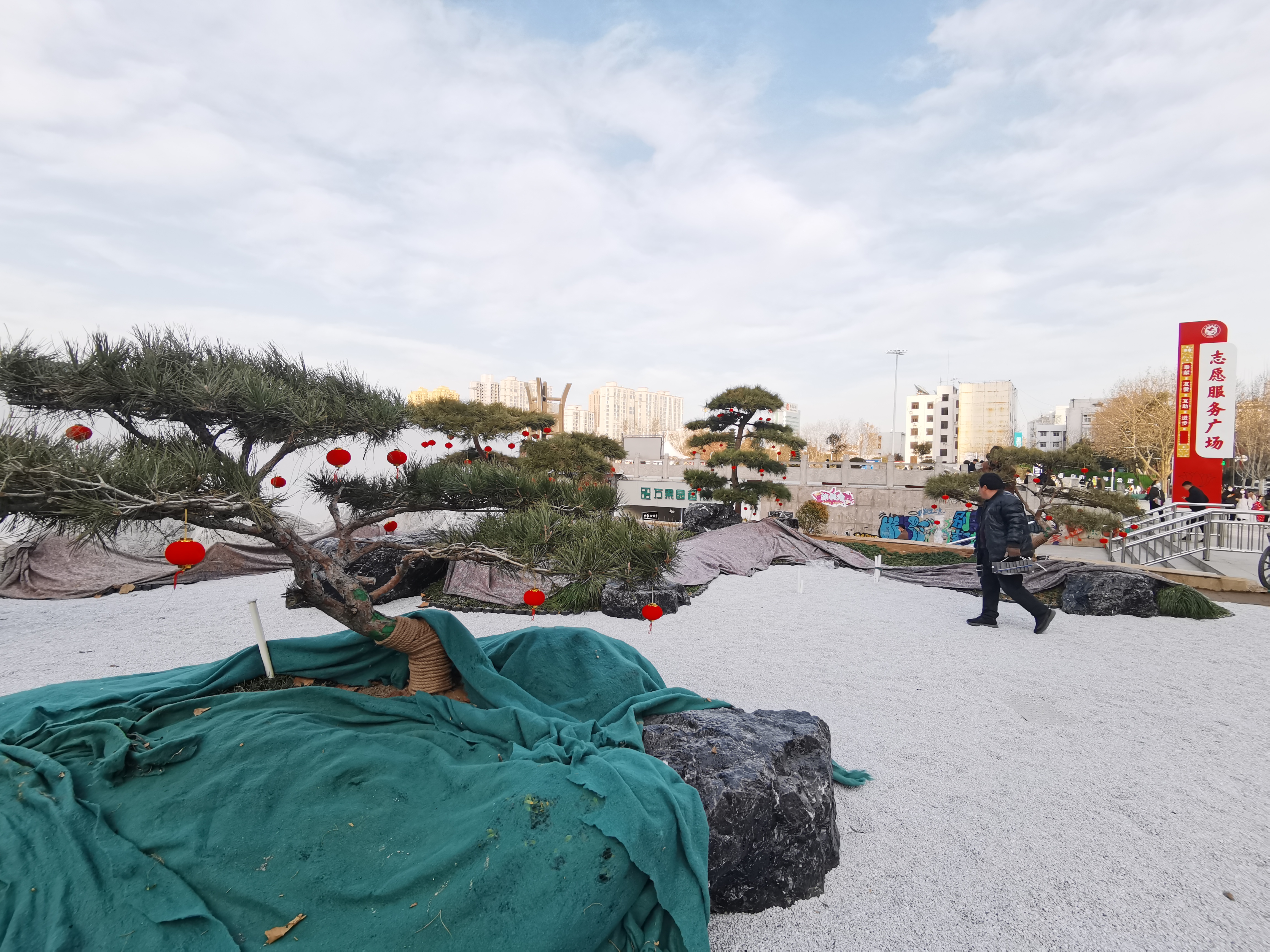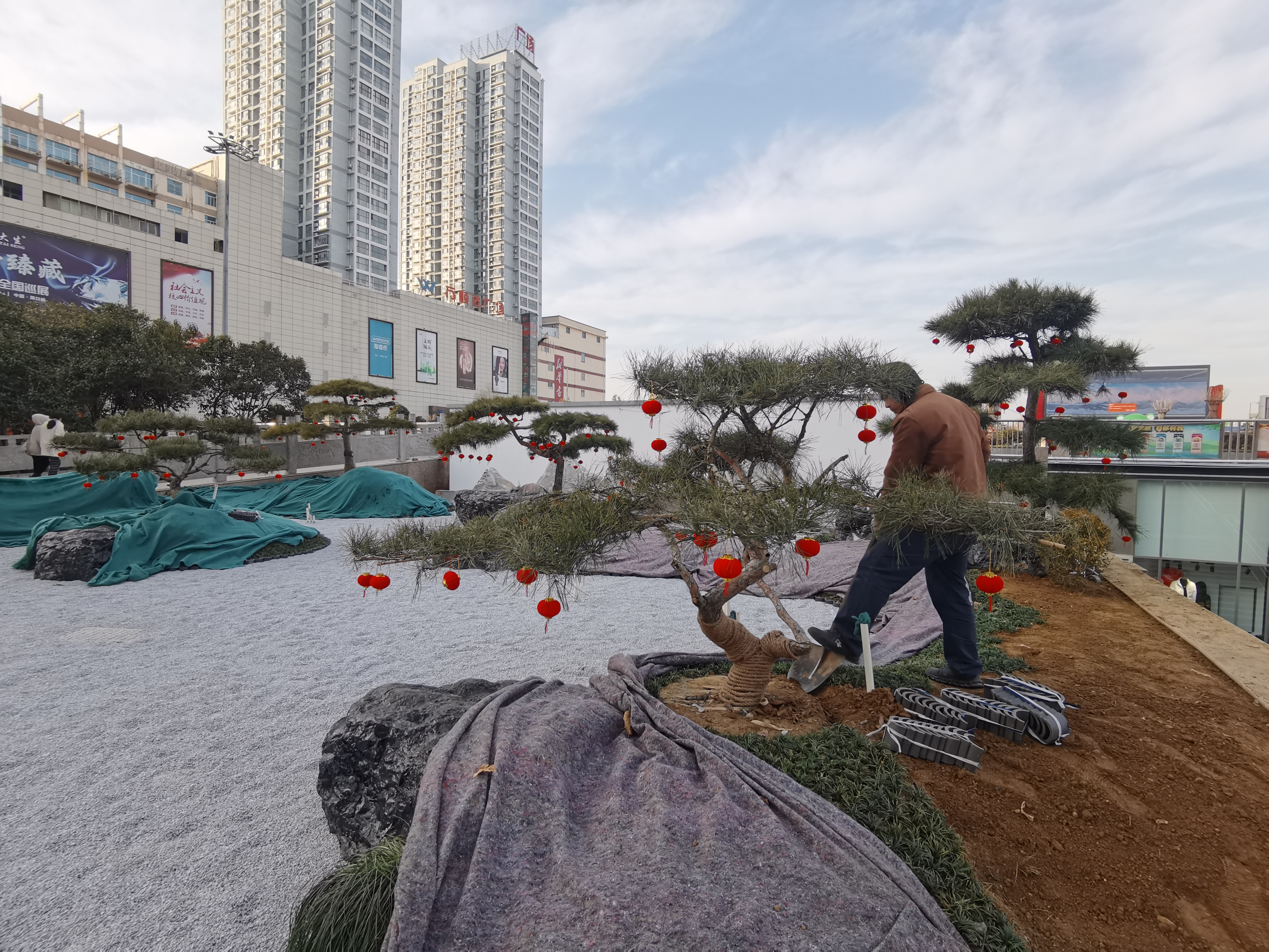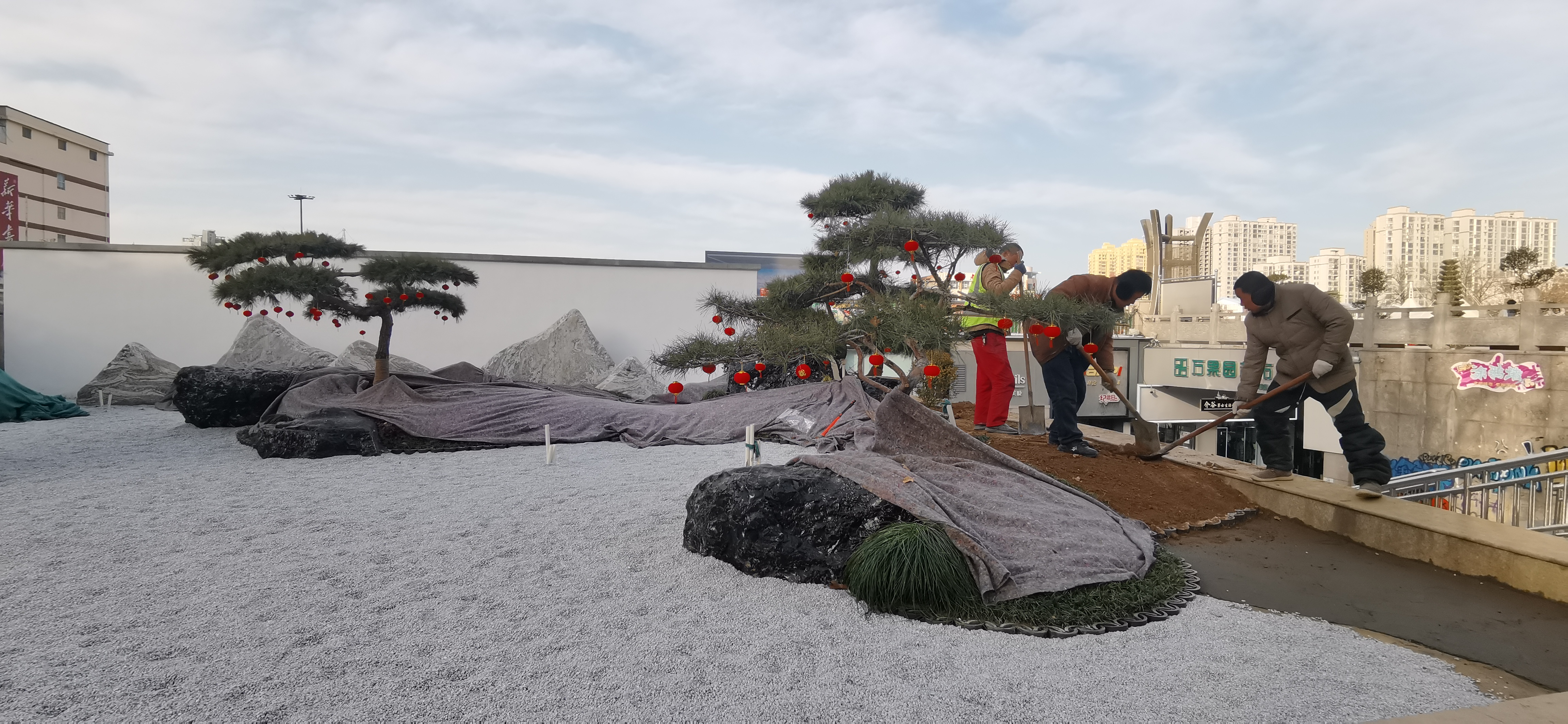 1月9日,工人在中心城區(qū)五一文化廣場綠化提升改造現(xiàn)場緊張工作。記者在廣場南側(cè)看到,東西兩端的圍擋己拆除,小而精的精品綠化工程顯現(xiàn)。兩處綠化景觀最后面是一個景墻,景墻再往前是一片錯落有致的景石,給人一種峰巒疊嶂的感覺,再往前是由造型各異的迎客松、草坪、綠色植物等。②18